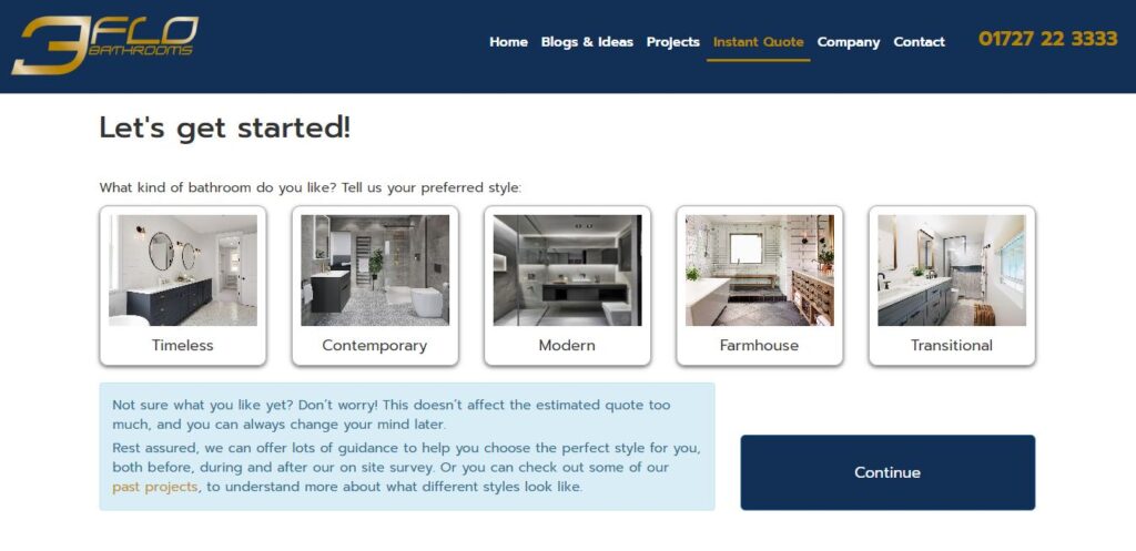 We also created a totally bespoke instant quotation tool, which allows the customer begin the process of planning their bathroom project, access an instant indicative price and book their site visit.