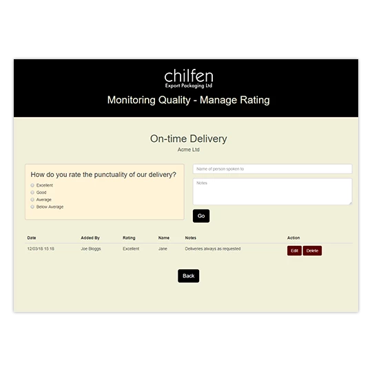 This bespoke app has been vital tool for Chilfen Export Packaging in effectively monitoring customer satisfaction. It has been a big time saver and has made recording information for the purpose of their ISO 9001 certification much easier.